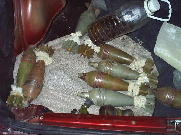 In someone's trunk at a checkpoint. Wonder what's in the bottle?