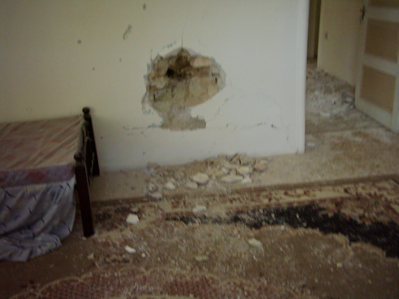 | Here's where a rocket hit the 'apartment' that my buddy was staying in... the day after he moved out. | |