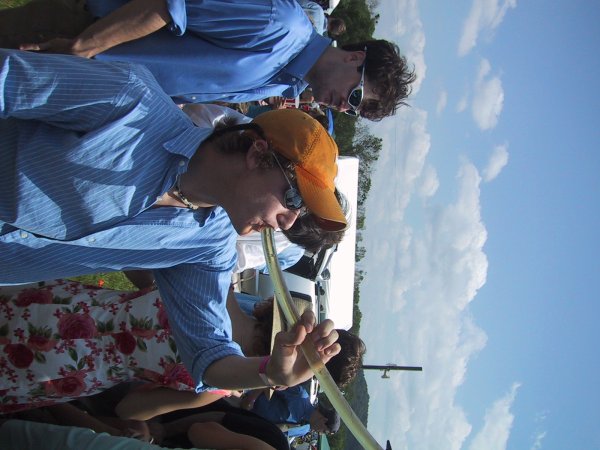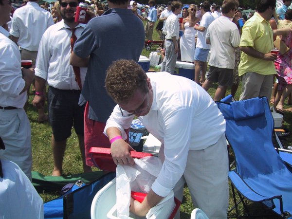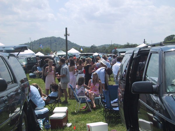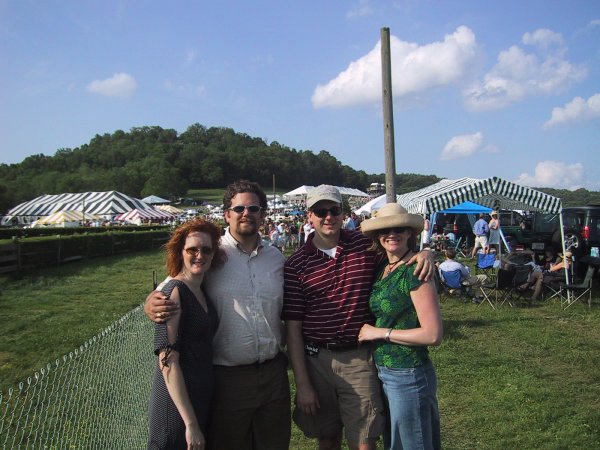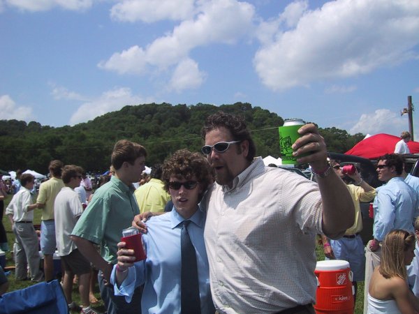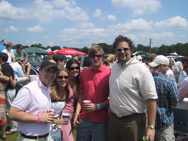 | The pictures below are the guys we were next to last year. We got a much nicer spot next to the track this year, so we were no longer next to this fun loving bunch. We decided to stop by and see how they were doing, though. Looks like they are having as much fun as last year! | |